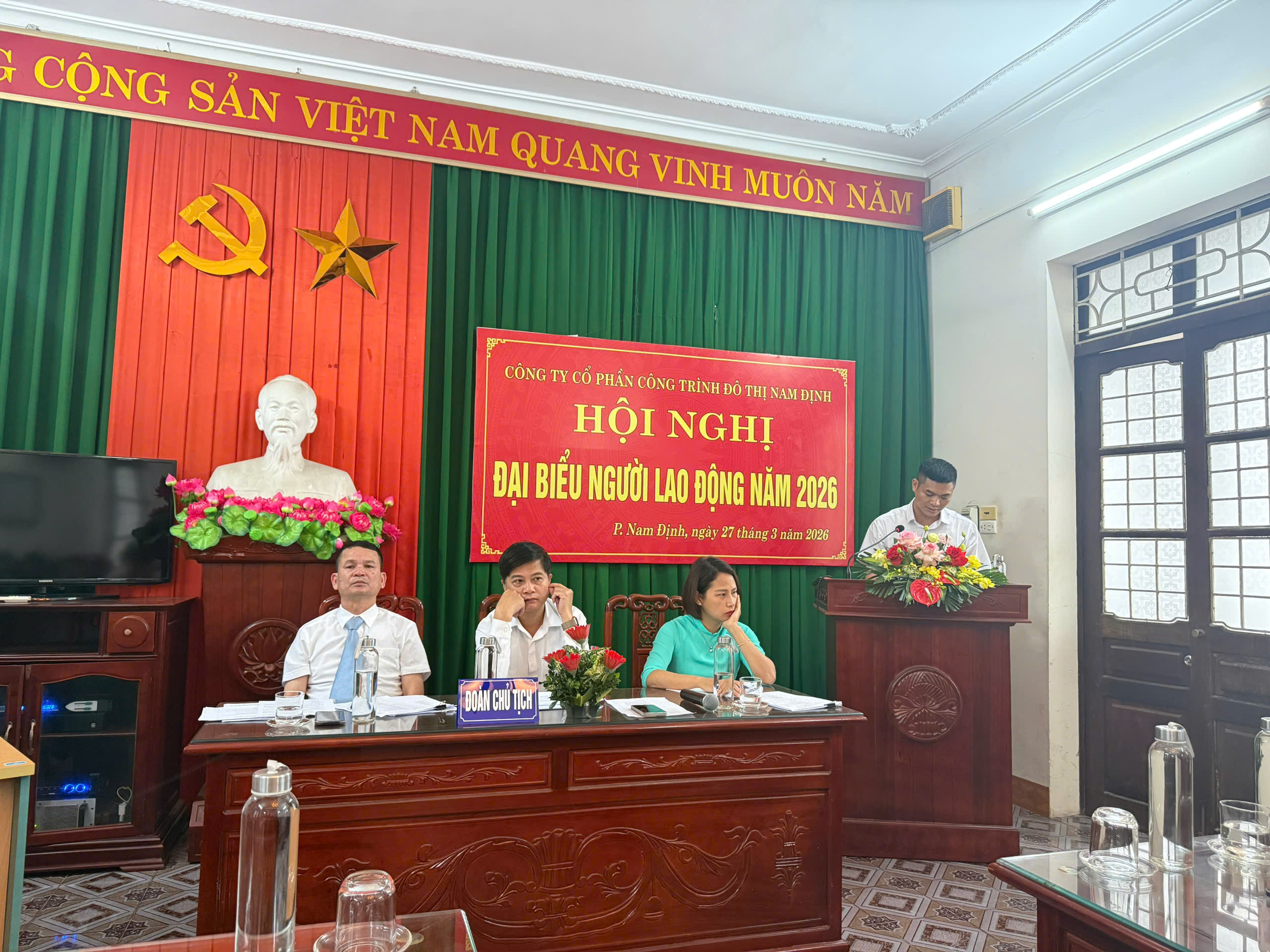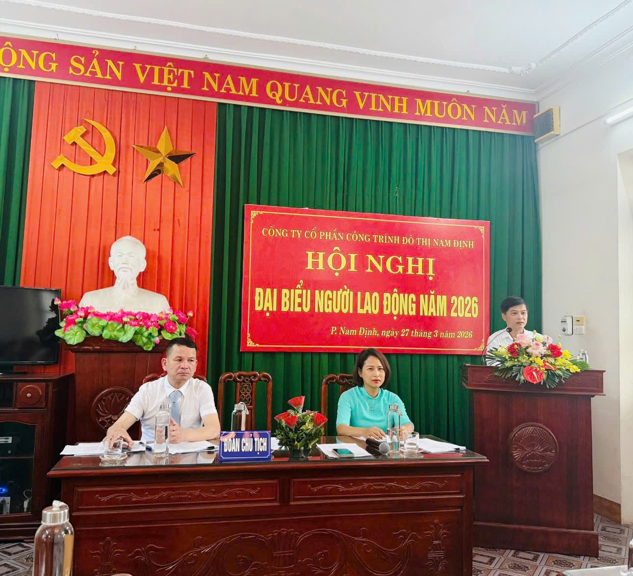 Công ty Cổ phần Công trình Đô thị Nam Định đã tổ chức thành công Hội nghị Người lao động năm 2026 với sự tham dự của lãnh đạo Công ty, đại diện các tổ chức đoàn thể và người lao động trong Công ty.
